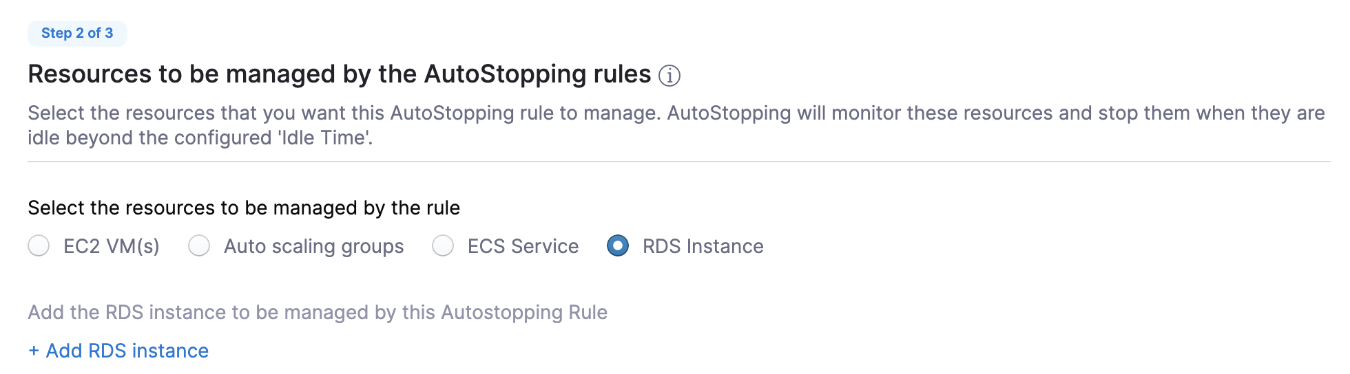 2. Create an AutoStopping rule for the RDS instance or cluster.