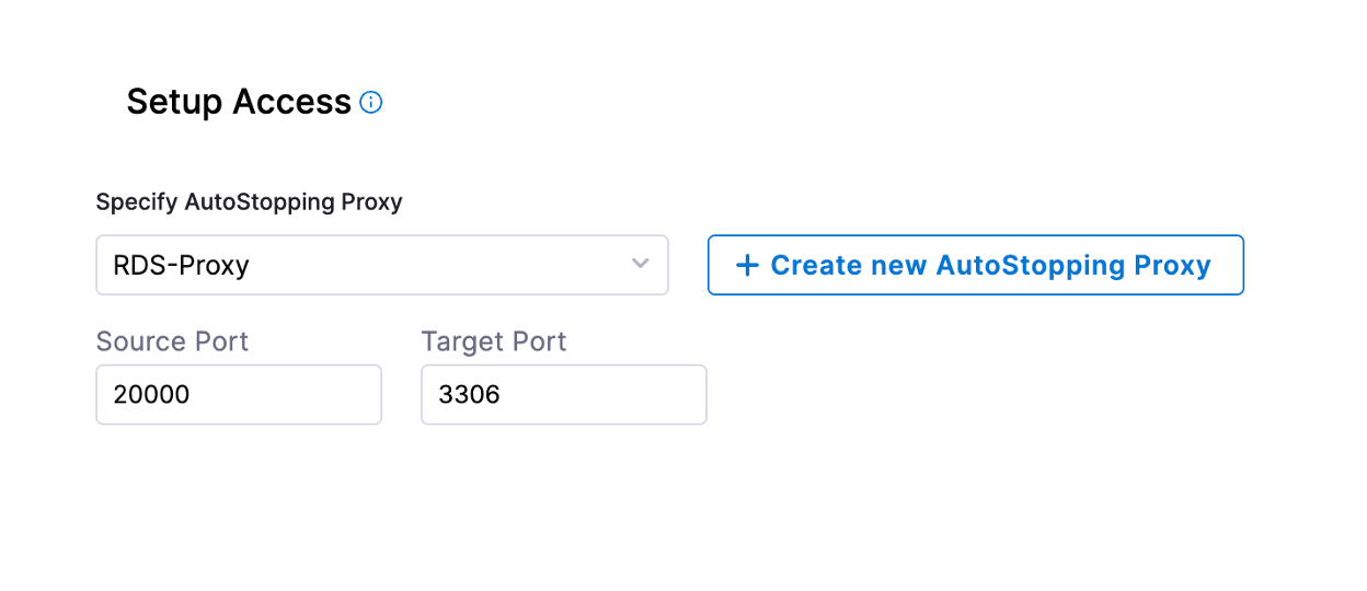1. In the Setup Access screen, select the AutoStopping Proxy from the dropdown list or create a new one.