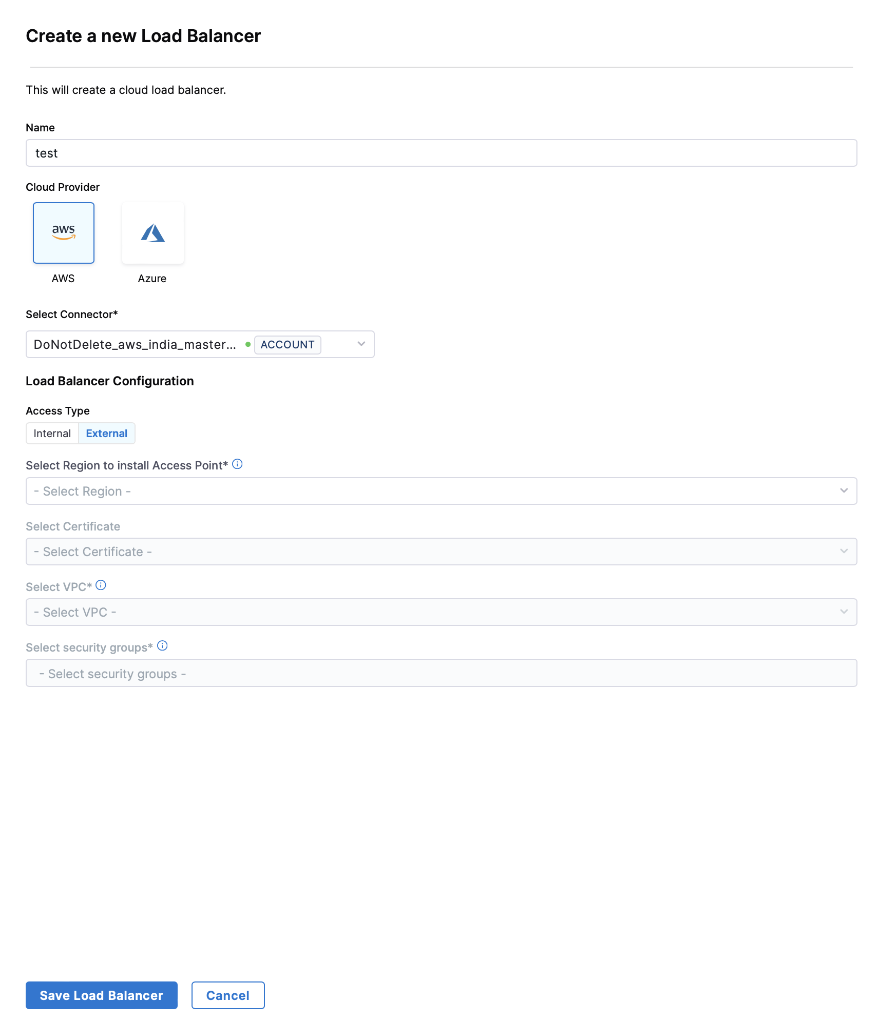 You can either create a load balancer from the CCM UI or import an existing load balancer on your AWS account.