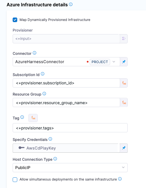 - In the Harness infrastructure, enable the option Map Dynamically Provisioned Infrastructure.