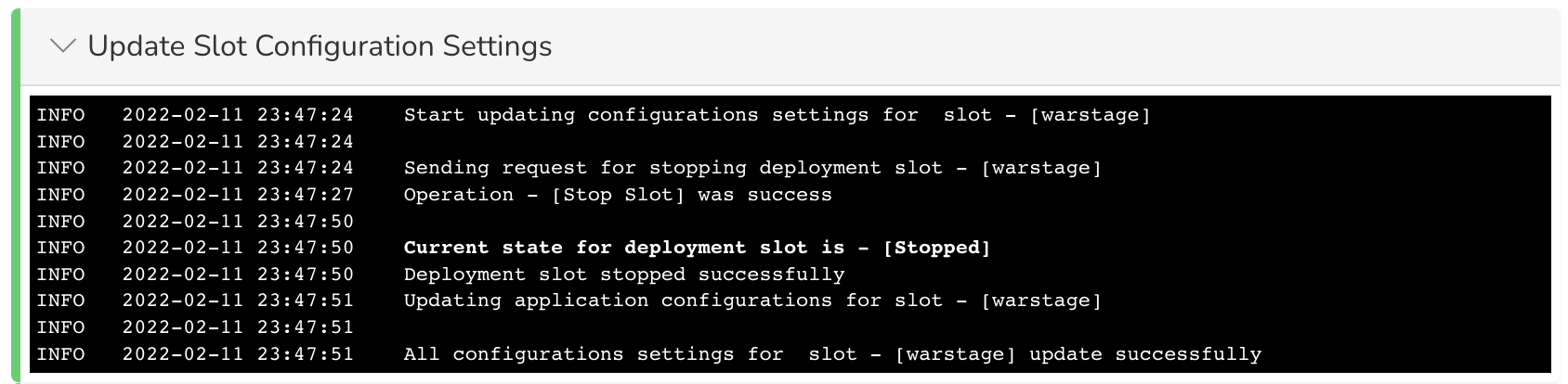 Sending request for stopping deployment slot - [stage]