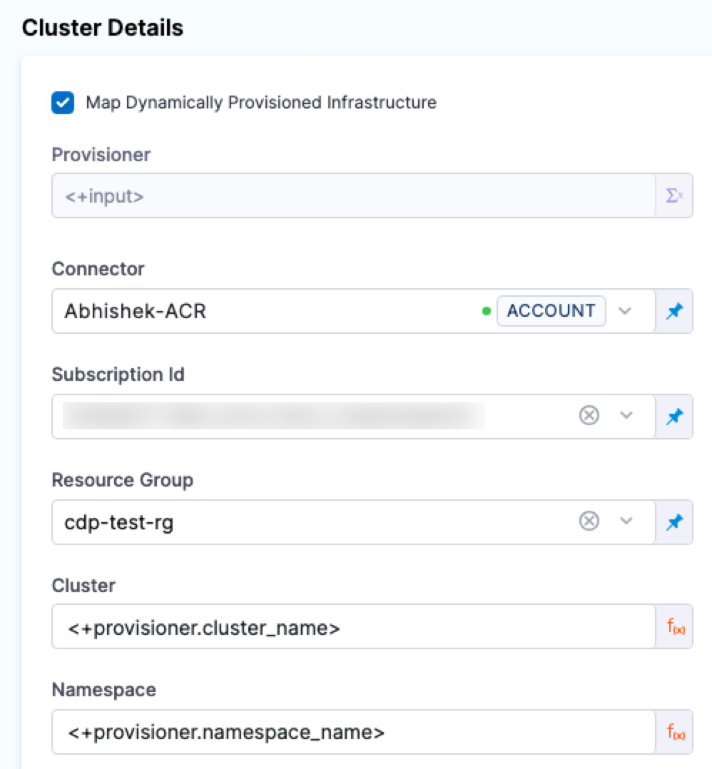 2. In the Harness infrastructure, in Cluster Details, enable the option Map Dynamically Provisioned Infrastructure.