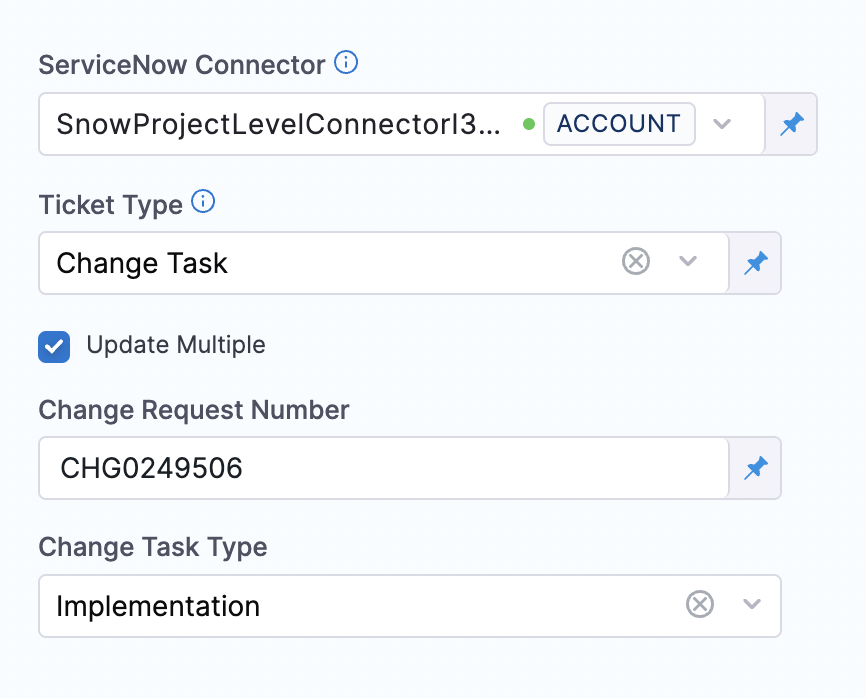 - If the value of a field has changed in ServiceNow, Harness includes a refresh icon that you can select if you want the field to show the updated value. Harness does not automatically update the field with the latest value.