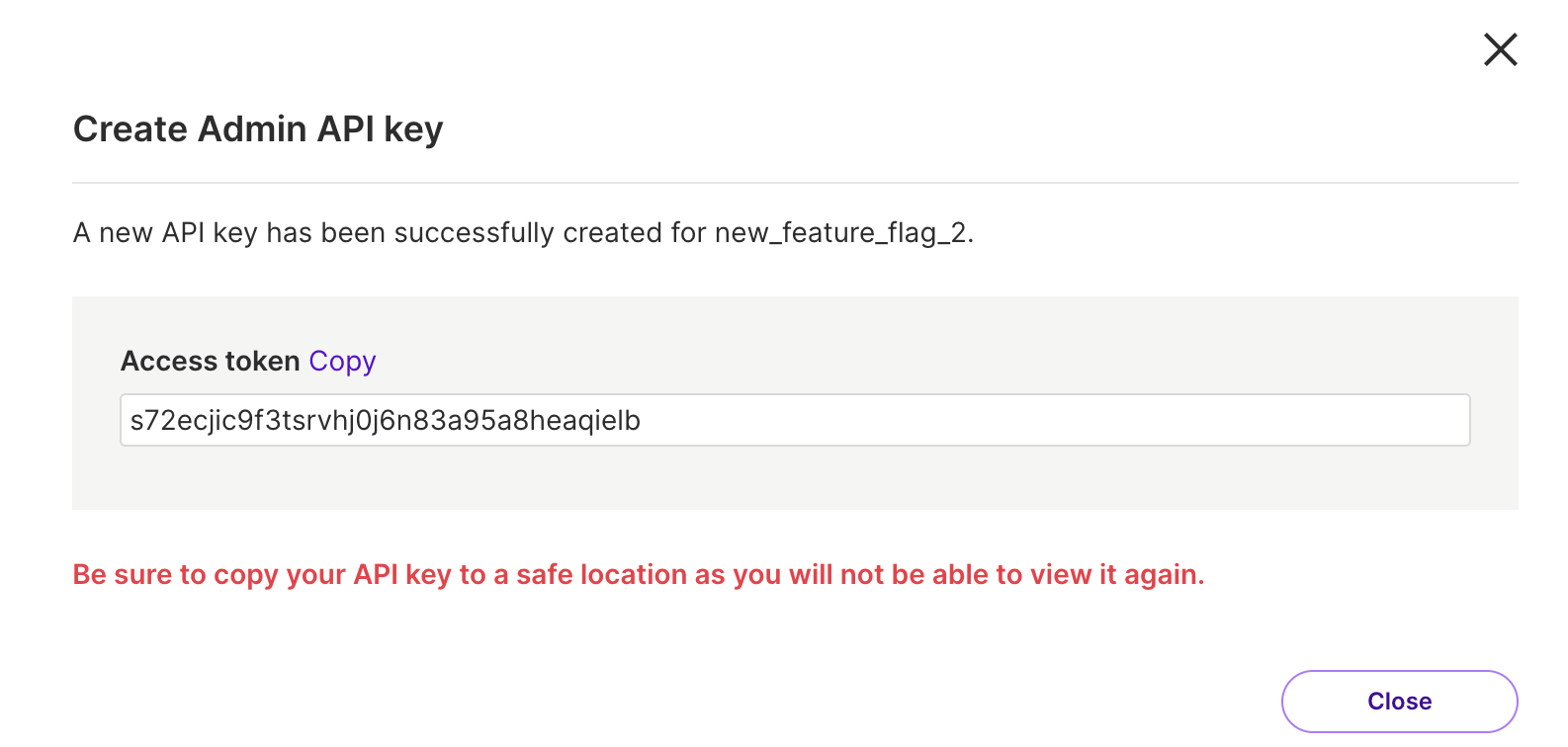 Be sure to copy your API Key once it's generated. For security purposes, you won’t see the key again.