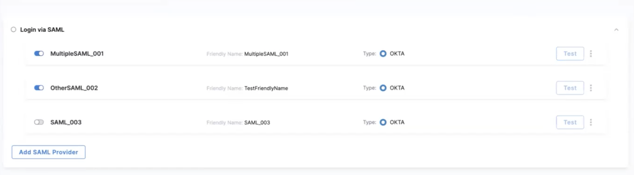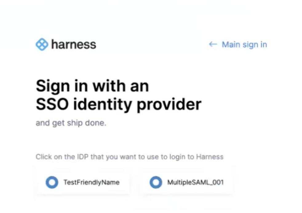 Harness supports multiple identity providers (IdPs) for user authentication using SAML. You can configure a mix of various SAML providers and enable or disable them for user authentication.