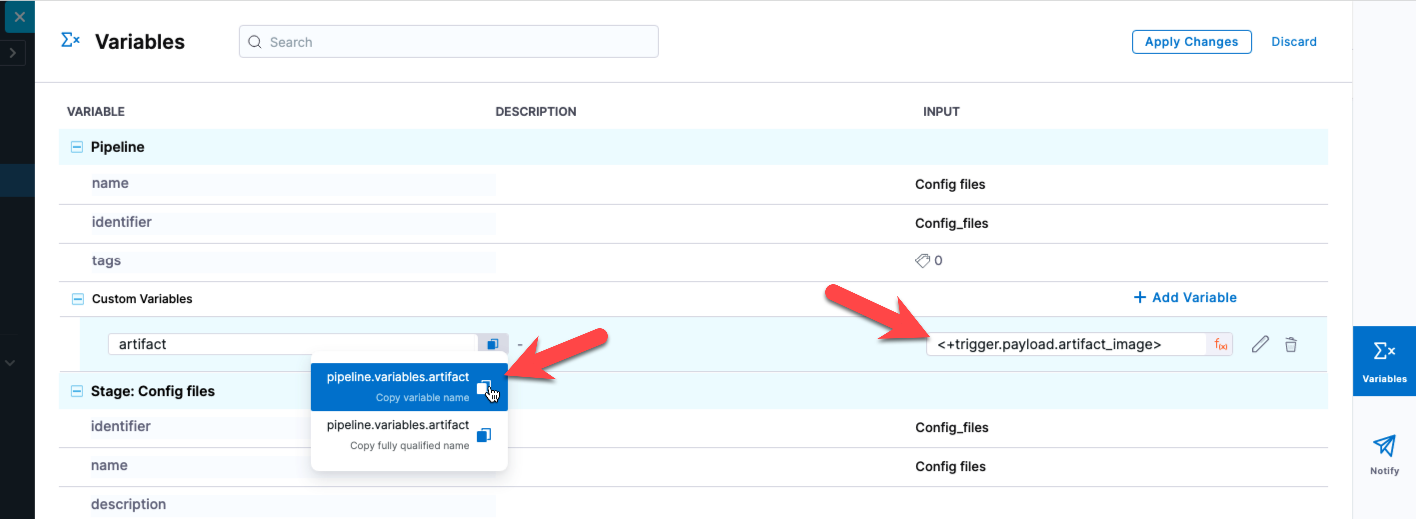 Let's look at an example where we pass a source pipeline's artifact location expression (<+artifact.image>) into a target pipeline using its trigger.