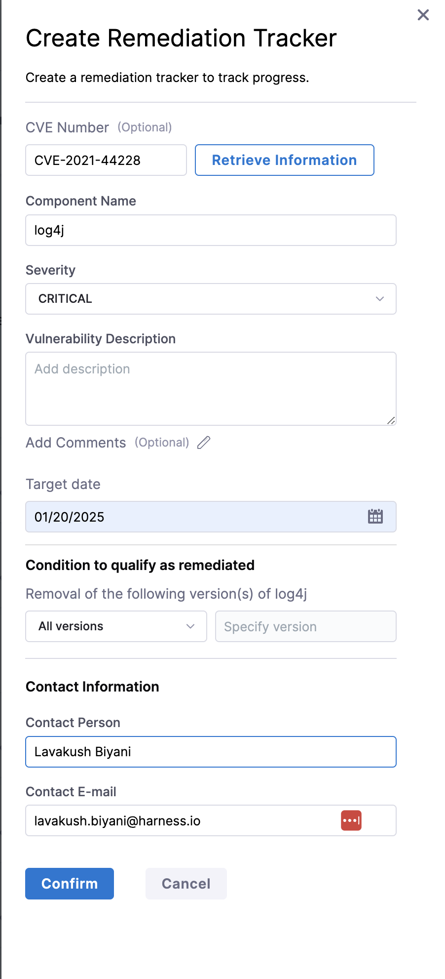 Before creating a remediation tracker, it is crucial to ensure that your deployment pipelines incorporate and successfully complete the SBOM Orchestration step. Additionally, all artifacts must be listed in the Artifacts view page in the SCS module, as the tracker can only screen through those deployed artifacts available in this view.
